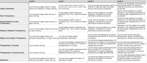 The guidelines (see Science Chart and the report at Science) have eight categories, each with three levels of rigor that may vary according to specific subject matter. Its popularity so far……. from Science of US.