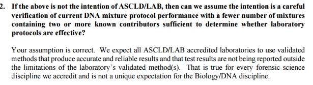 The FSC answers to the ASCLD are included in the pdf below. The FSC re confirmed what they are concerned about (accuracy and reliable methods) which is contained in this image. The bold text is from the ASCLD.