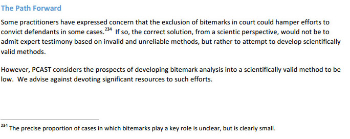 They also make short shrift of ABFO representatives who testified before the Council during various hearings. Notable in the quick denier back-lash to PCAST is that they locked out forensic practitioners from participating. Pure bunk.