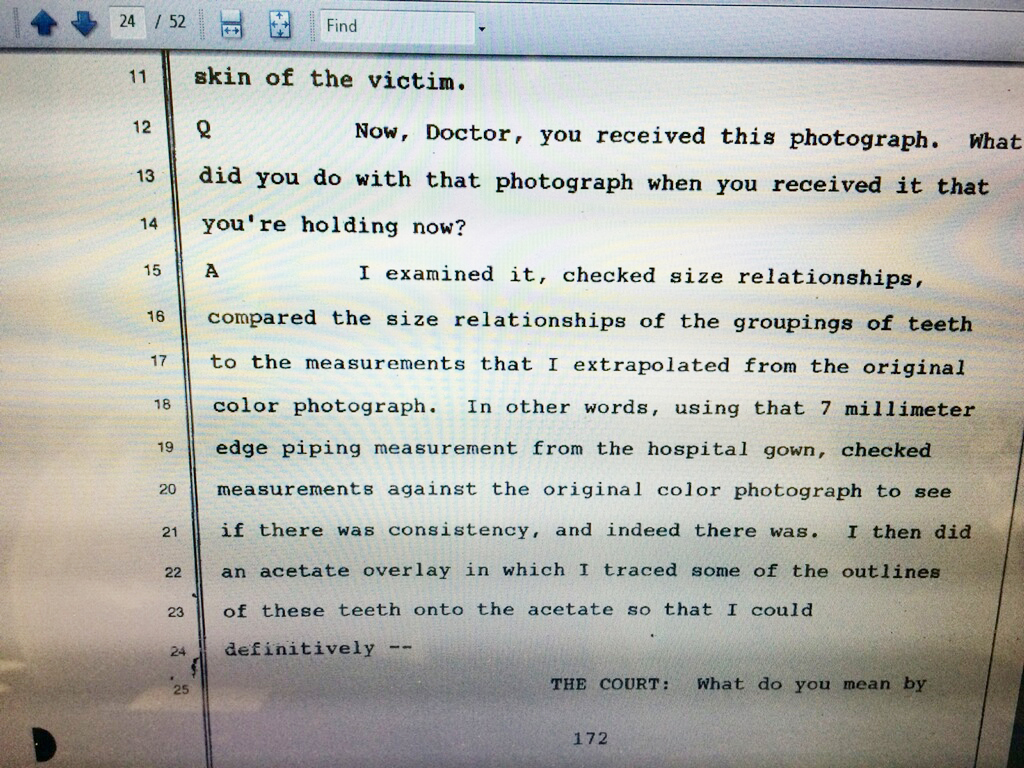A two article blog post by David Averill about Kunco and the ongoing bitemark “war” is available here. It contains numerous evidence photos and further case info. The “excerpts” give you the gist of what some have called “voodoo science” (Wall St Journal, yesterday). Its second section is what the judge said during Kunco’s previous appeal.