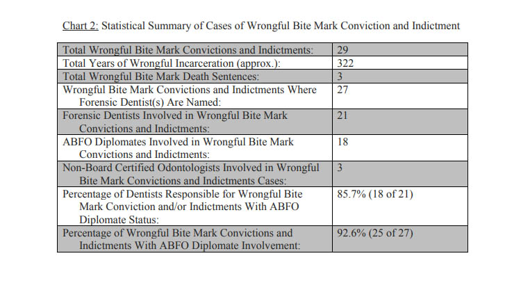 wrongful convictions and indictments later overturned through DNA testing, bite mark