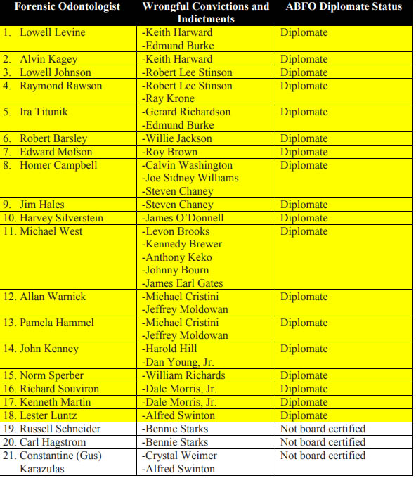 those dentists were Diplomates of the American Board of Forensic Odontology at the