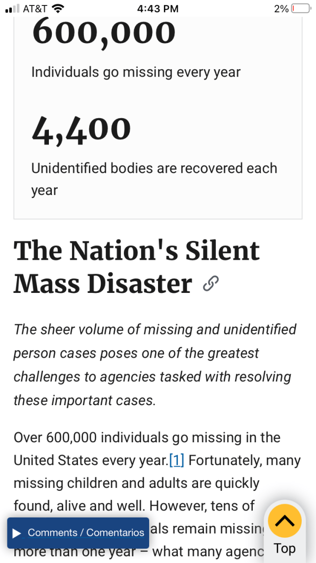 1. Only 13 States mandate police to obtain and enter missing persons fingerprint, dental, and personal information into the federal NamUS system.